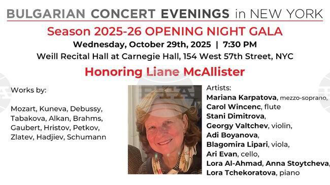 С галаконцерт в „Карнеги хол“ ще бъде открит новият сезон на инициативата „Български концертни вечери в Ню Йорк“