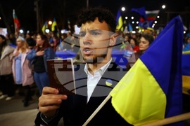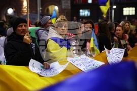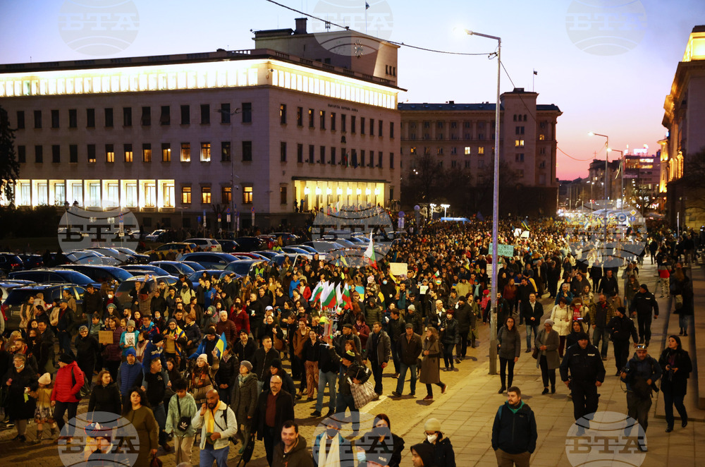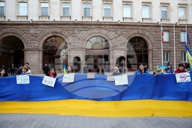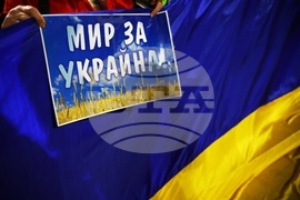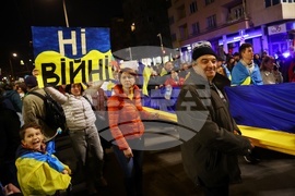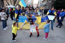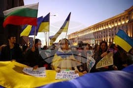 София (24 март 2022) Шествие в подкрепа на Украйна се провежда на площад "Независимост" в столицата.