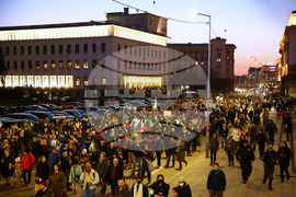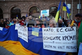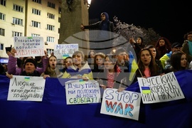 София (24 март 2022) Мирно шествие в подкрепа на Украйна се провежда в столицата. Демонстрантите преминават през "Орлов мост".