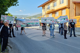 Село Белащица (17 май 2022) Протестиращи от Белащица блокираха пътя заради кариерите в района и не допускат 4 камиона на фирмата „Европейски пътища“.