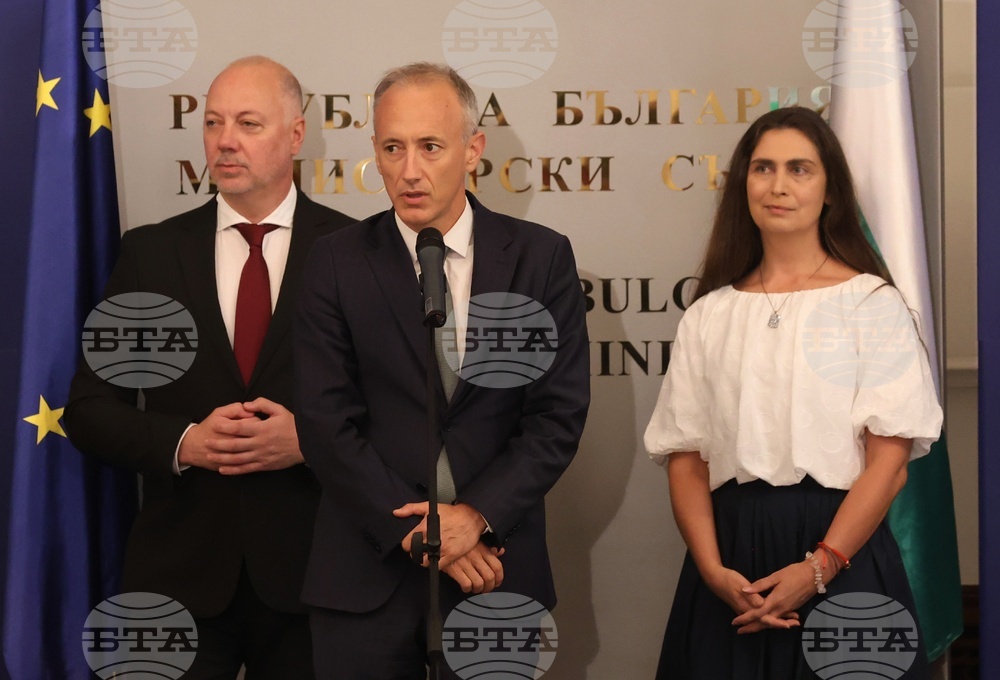 София (18 септември 2025) В гранитна зала на Министерски съвет министър-председателят връчва отличия на българските ученици, спечелили медали от международни олимпиади по природни науки през 2025 г. На събитието присъстват (от ляво надясно): премиерът Росен Желязков, министърът на образованието и науката Красимир Вълчев и заместник-председателят на Управителния съвет на Сдружението на олимпийските отбори по природни науки Елена Маринова.