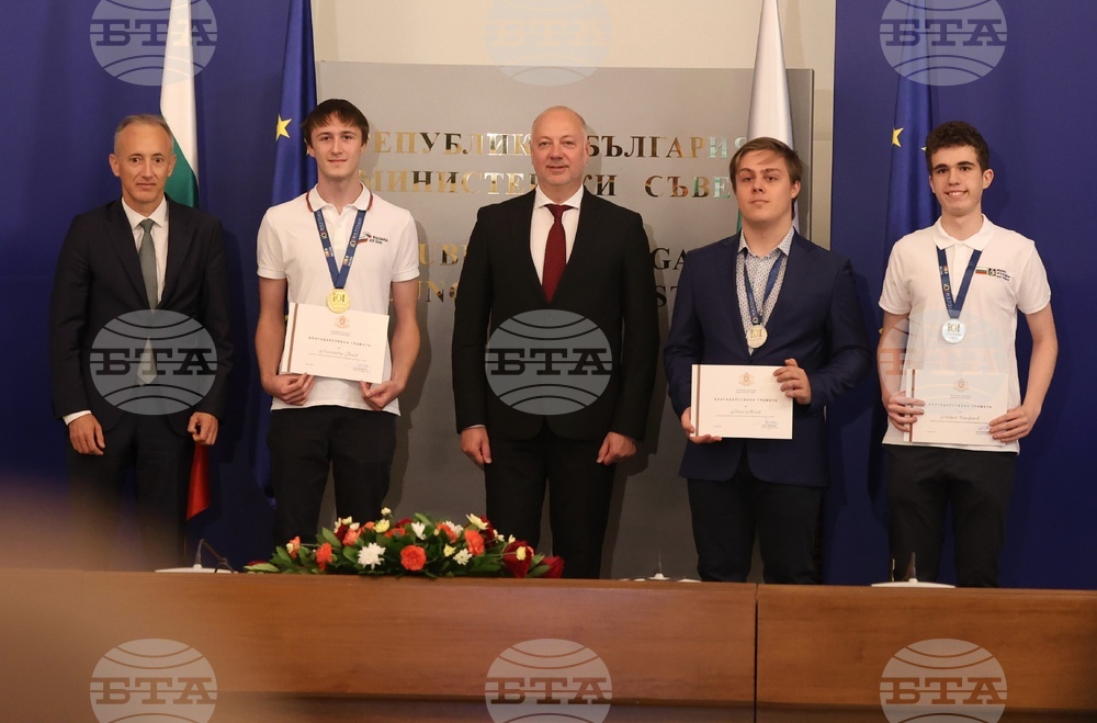 София (18 септември 2025) В гранитна зала на Министерски съвет министър-председателят връчва отличия на българските ученици, спечелили медали от международни олимпиади по природни науки през 2025 г. На събитието присъстват премиерът Росен Желязков, министърът на образованието и науката Красимир Вълчев и заместник-председателят на Управителния съвет на Сдружението на олимпийските отбори по природни науки Елена Маринова.