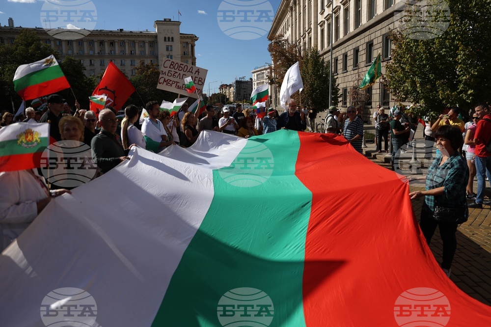 София (18 септември 2025) Привърженици на партия „Възраждане“ простестират в района на Народното събрание.