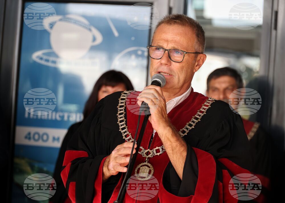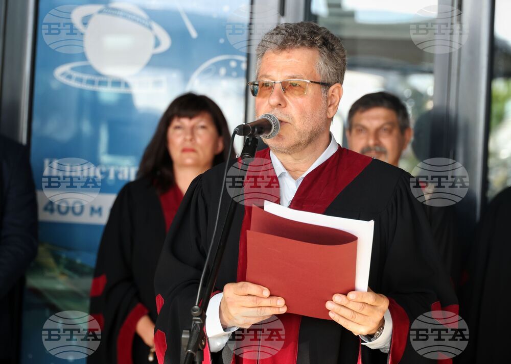 Бургас (18 септември 2025) На територията на Пристанищния комплекс - Магазия 1, се провежда церемония по откриване на новата учебна година на Националната художествена академия (НХА) - Филиал Бургас. Събитието включва празничен водосвет и музикални изпълнения на ученици от Националното училище за музикално и сценично изкуство (НУМСИ) "Проф. Панчо Владигеров" - Бургас. На снимката: ректорът на Минно-геоложкия университет "Св. Иван Рилски" проф. д-р инж. Ивайло Копрев.