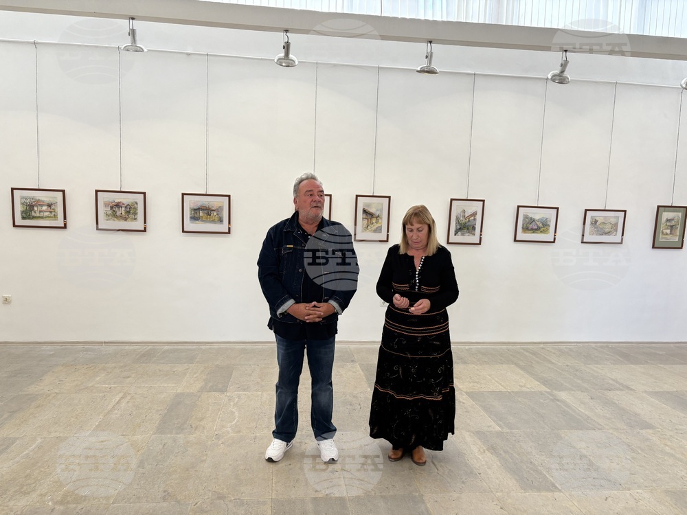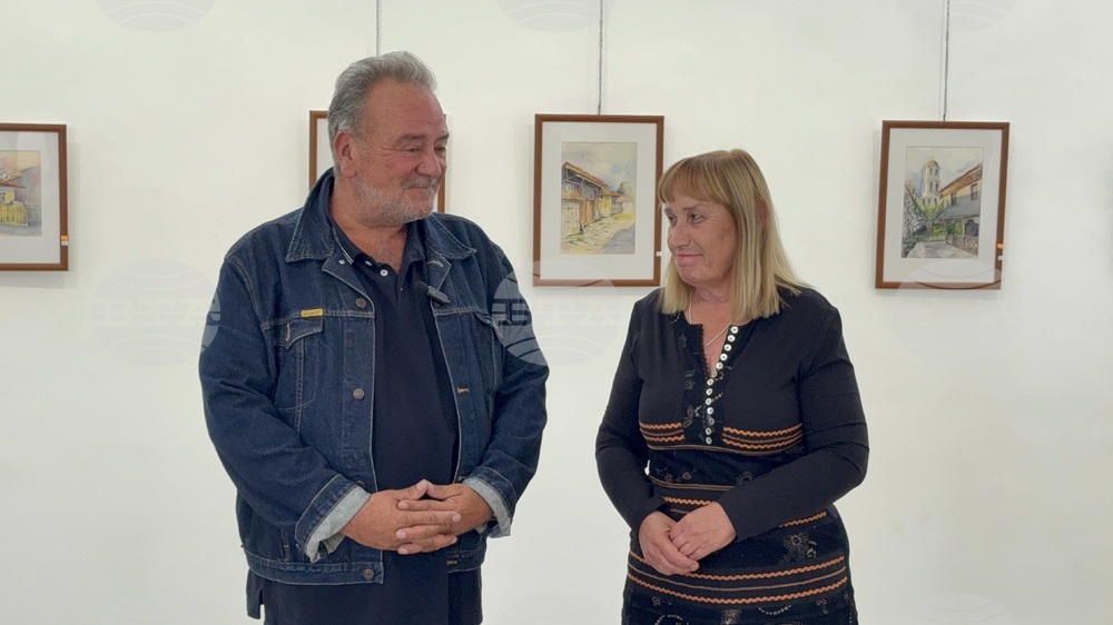 Самоков (18 септември 2025) Самоковската художничка Елена Белстойнева (вдясно) подреди изложба в Художествена галерия “Проф. Васил Захариев” в Самоков. Тя показва около 40 картини, вдъхновени от красотата на Самоков, планината и някои други държави. Куратор на изложбата бе директорът на Исторически музей - Самоков Веселин Хаджиангелов (вляво).