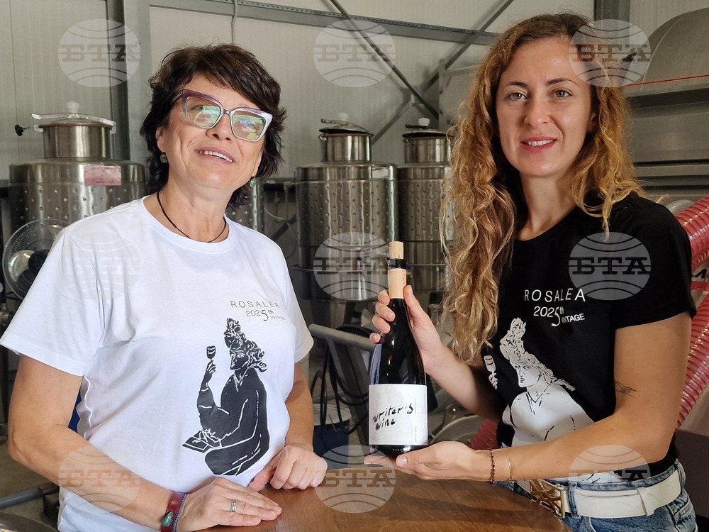 Харманли (18 септември 2025) Чешките инвеститори Петър Белец и Владислав Винтер създават една от най-новите винарски къщи в региона на Харманли - „Росалеа“ и развиват местните традиции във винопроизводството. Избата работи с гроздови сортове от собствения си масив край село Шишманово. На снимката: енологът на винарната Екатерина Гаргова (вляво) и търговският представител Мария Ходжева.