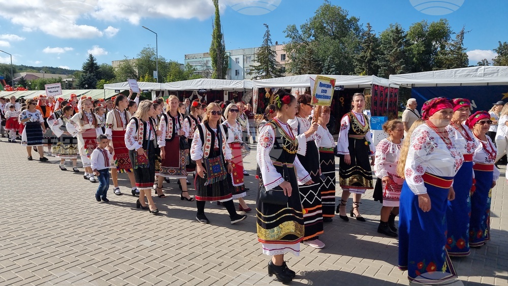 Тараклия (20 септември 2025) Вицепрезидентът на България Илияна Йотова откри 24-ия етнокултурен фестивал "Единство чрез многообразие" в молдовския град Тараклия. Началото бе поставено с дефиле на участници, представящи национални костюми, села, етнически общности и институции. На централния площад са изградени повече от 50 етнокъщи и различни тематични зони. Събитието събра на едно място майстори, художници и творчески колективи от различни региони на Молдова, Приднестровието, Украйна, Румъния и България. На снимката: дефиле от фестивала в Тараклия.
