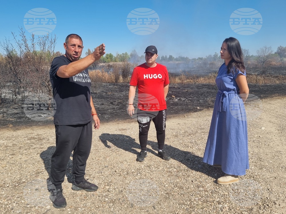 Село Ясен (23 септември 2025) Продължава гасенето на тлеещи огнища от пожара на територията на блатата между плевенските села Ясен и Дисевица. Пожарникари обливат мястото с вода, очаква се помощ и от доброволци. Пожарът е в зона по НАТУРА 2000. На снимката (от ляво надясно): кметът на село Дисевица Пламен Бешков, общинският съветник Ивайло Петров и кметът на село Ясен Мариана Иванова.