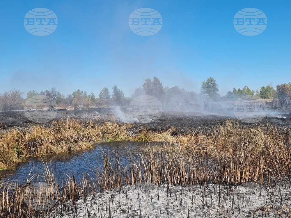Село Ясен (23 септември 2025) Продължава гасенето на тлеещи огнища от пожара на територията на блатата между плевенските села Ясен и Дисевица. Пожарникари обливат мястото с вода, очаква се помощ и от доброволци. Пожарът е в зона по НАТУРА 2000. На снимката: управителят на бившата рафинерия "Плама" Росен Софрониев и общинският съветник Ивайло Петров.
