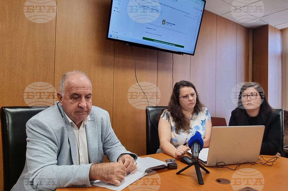 Шумен (23 септември 2025) До две седмици се очаква да приключват тестовете на новия сайт на Община Шумен, платформата за сигнали вече работи, съобщиха на пресконференция днес секретарят на общинската администрация Христо Павлов (втори отляво) и главният експерт „Поддръжка на информационни технологии“ Ралица Николова (втора отдясно), на която присъстваха и други експерти от IT отдела на кметството.