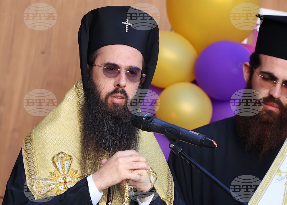 Бургас (23 септември 2025) В Културен дом „НХК“ се провежда церемония по откриване на Филиал Бургас на Националната академия за театрално и филмово изкуство (НАТФИЗ) „Кръстьо Сарафов“ и откриване на новата учебна година. Събитието включва представяне на екипа, който ще преподава в Бургас, тържествен водосвет и музикална програма. На снимката: водосвет отслужва Негово Високопреосвещенство Сливенският митрополит Арсений (в средата).