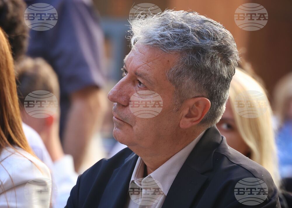 Бургас (23 септември 2025) В Културен дом „НХК“ се провежда церемония по откриване на Филиал Бургас на Националната академия за театрално и филмово изкуство (НАТФИЗ) „Кръстьо Сарафов“ и откриване на новата учебна година. Събитието включва представяне на екипа, който ще преподава в Бургас, тържествен водосвет и музикална програма. На снимката: ректорът на Националната музикална академия „Проф. Панчо Владигеров“ проф. д-р Сава Димитров (в средата).