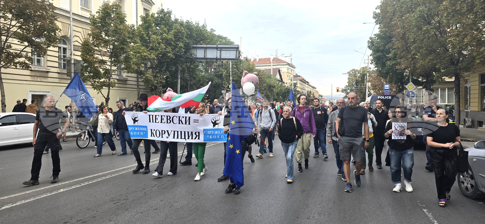 София (25 септември 2025) Протест на БОЕЦ под надслов „За свободна България – без Пеевски, Борисов и мафията!“, се провежда пред централата на партия „ДПС Ново начало“.