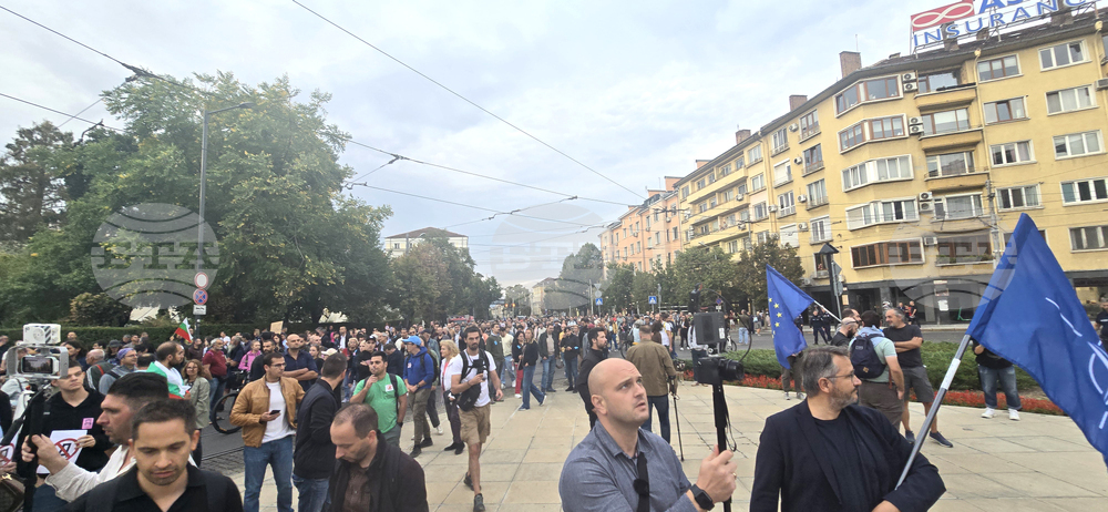 София (25 септември 2025) Протест на гражданско движение „БОЕЦ“, под надслов „За свободна България – без Пеевски, Борисов и мафията!“, се провежда пред централата на партия „ДПС Ново начало“.