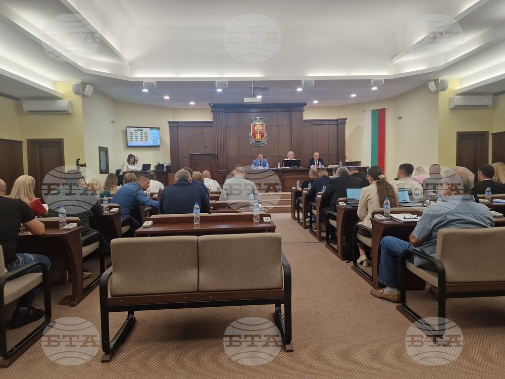 Хасково (26 септември 2025) Общинският съвет на Хасково гласува решение за преименуване на една от улиците на града на името на поета Ивайло Балабанов. Друго от решенията бе свързано с промяна на част от условията за паркиране в сина зона и увеличаване на цената за паркиране в нея от един на два лева на час. На заседанието съветникът Милена Налбантова депозира оттеглянето си от групата „Синьо Хасково“, с което тя се разпадна. На снимката: зала „Хасково“, където се провеждат заседанията на Общински съвет.
