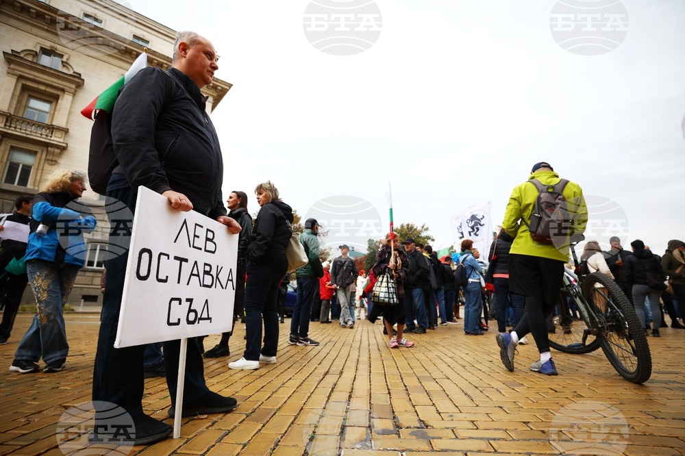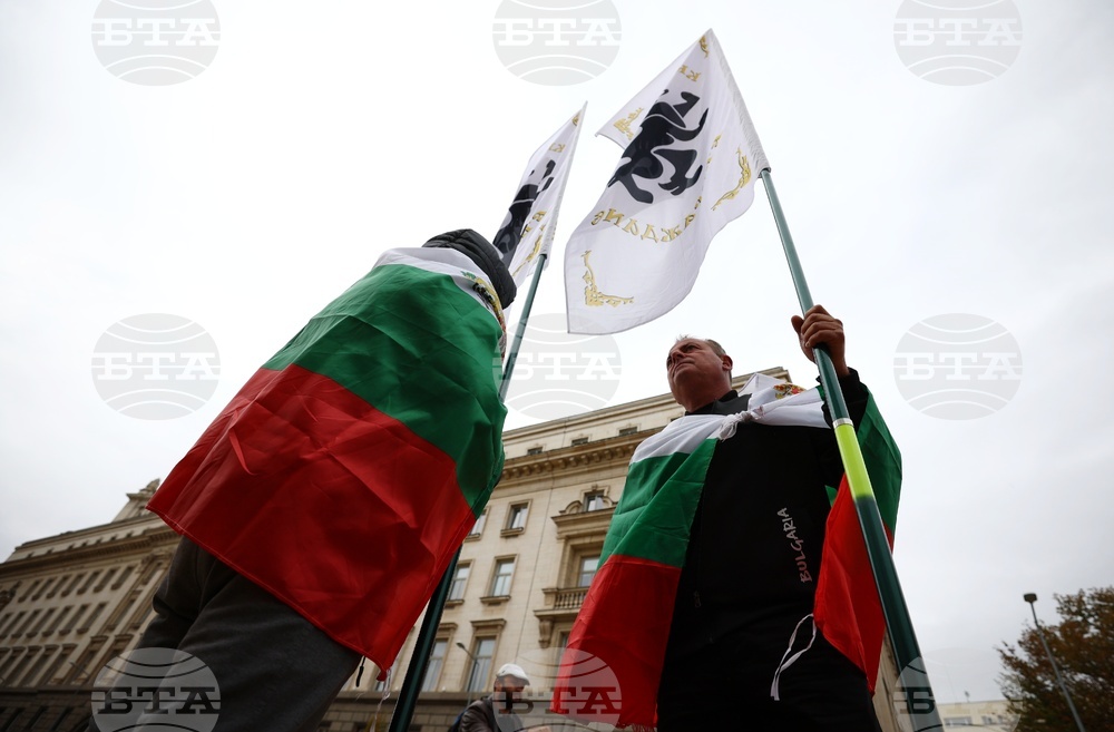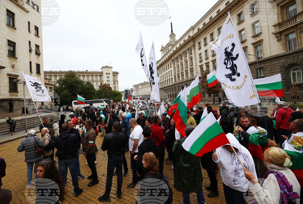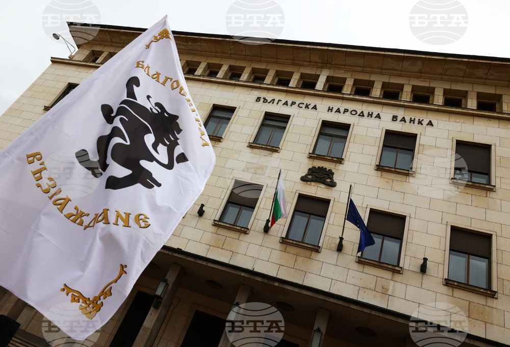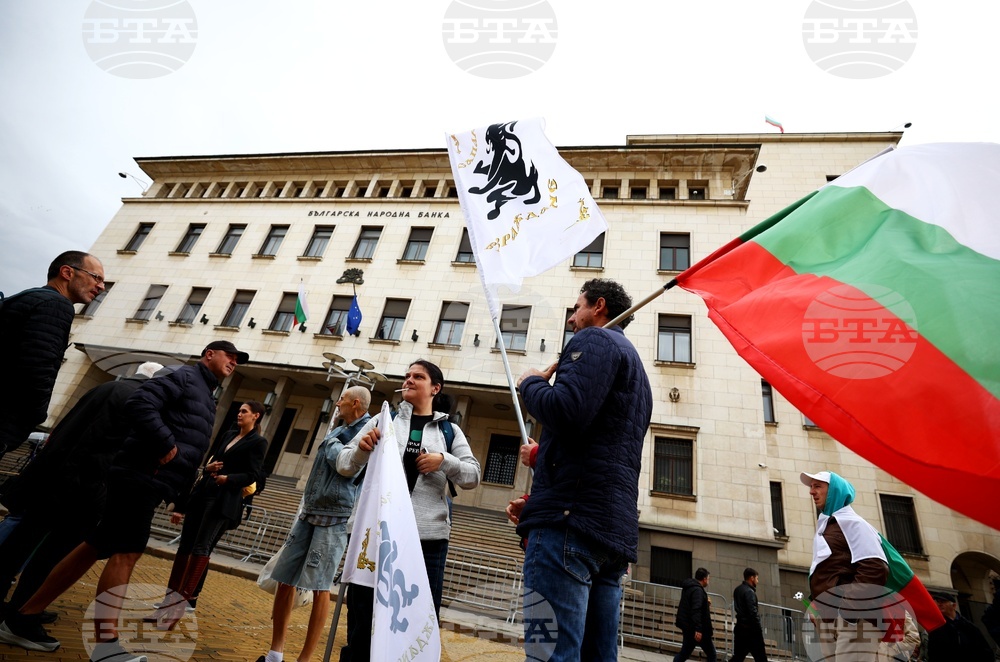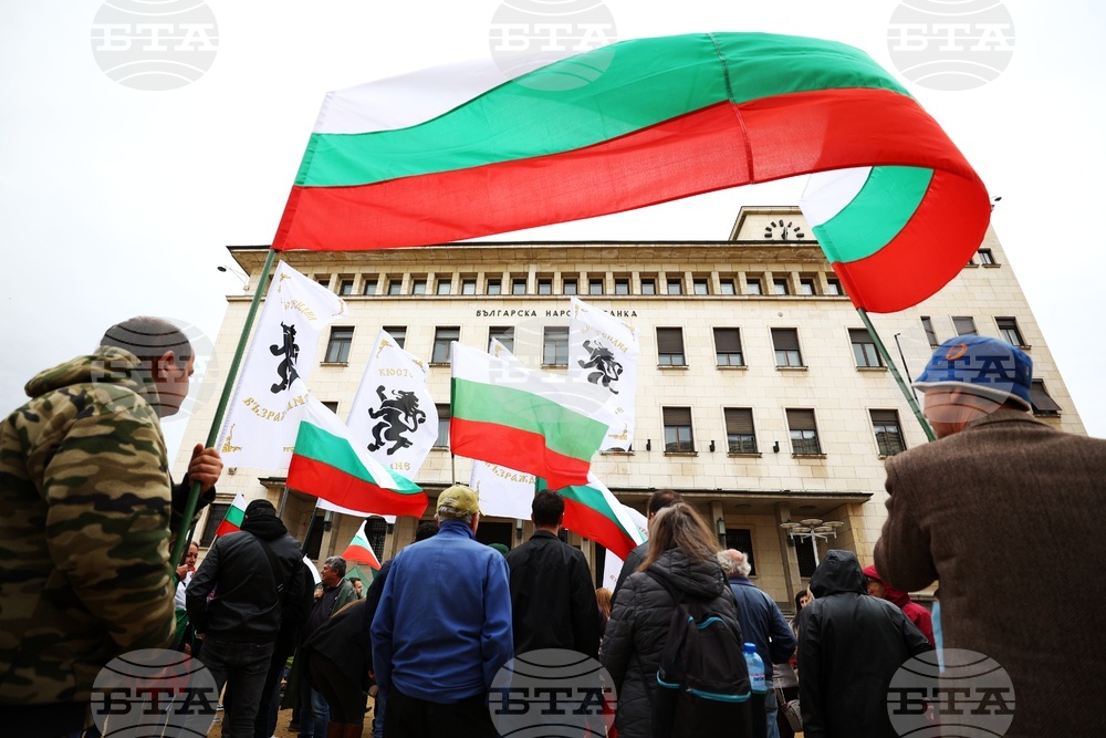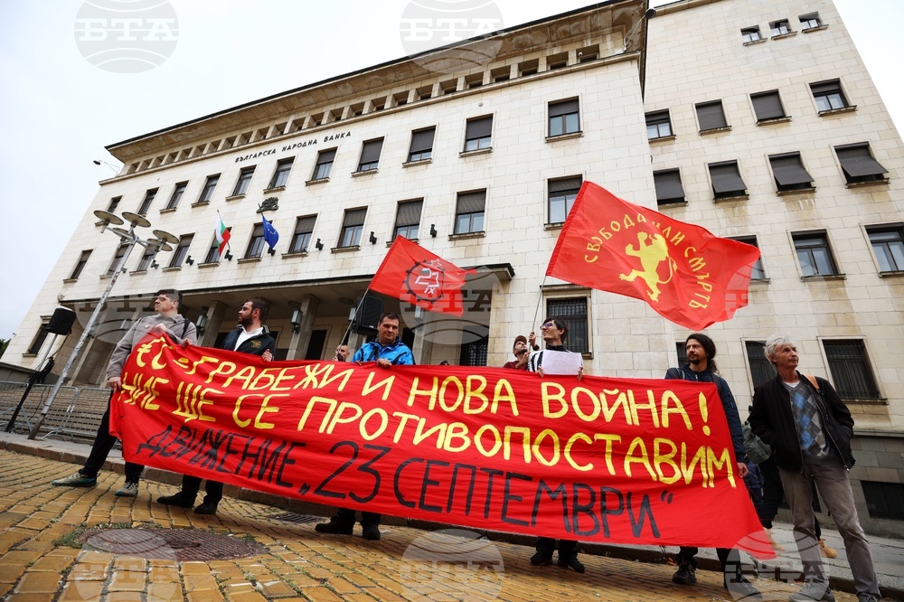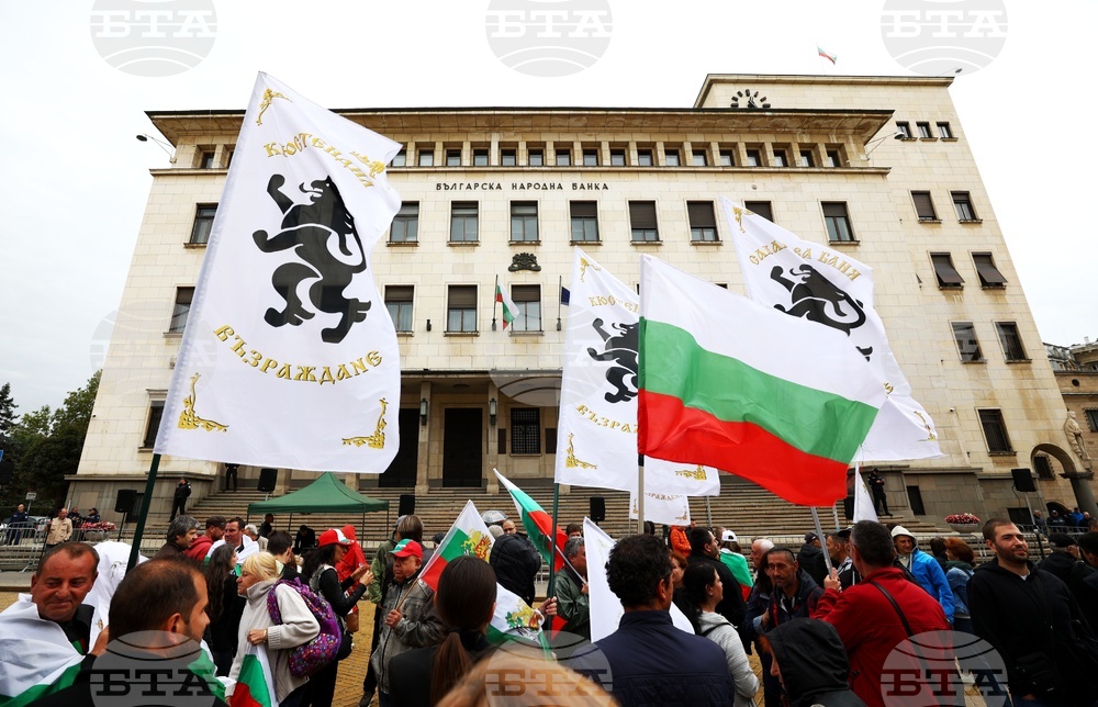 София (27 септември 2025) Протест на партия „Възраждане“ с искане за запазване на лева се провежда пред сградата на Българската народна банка.