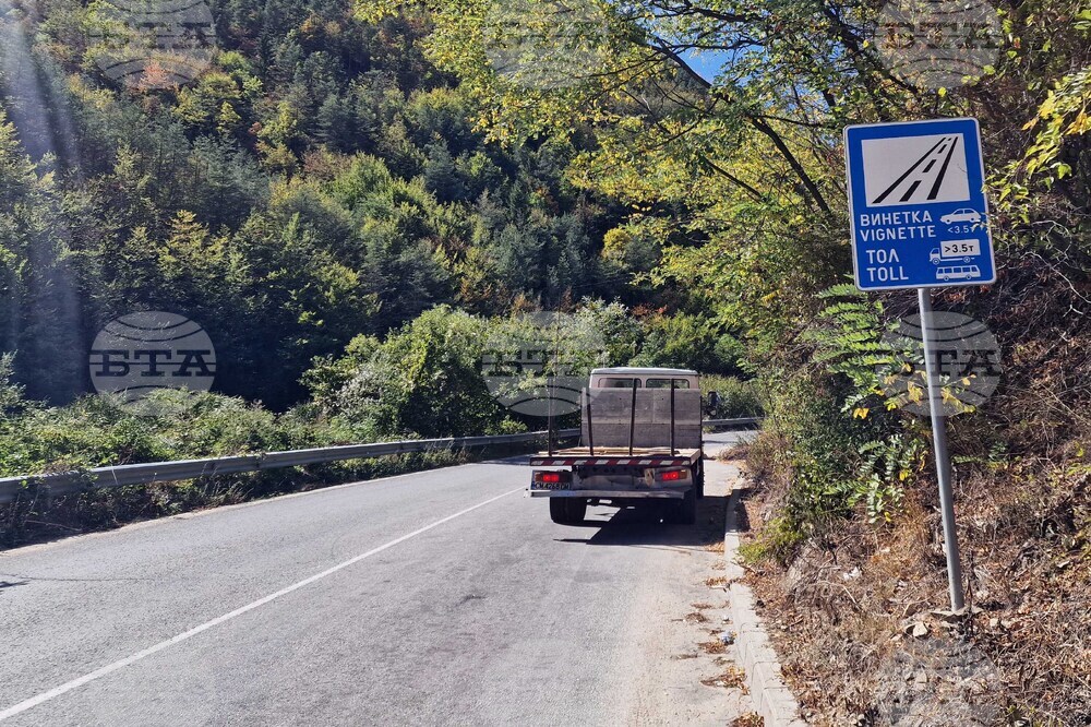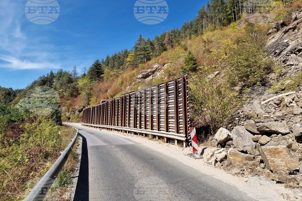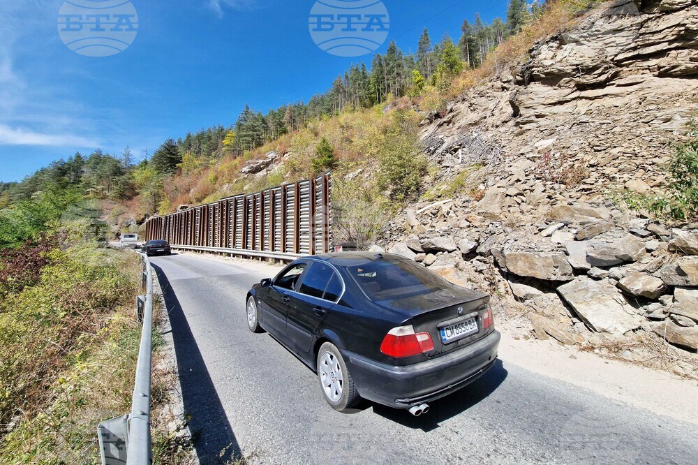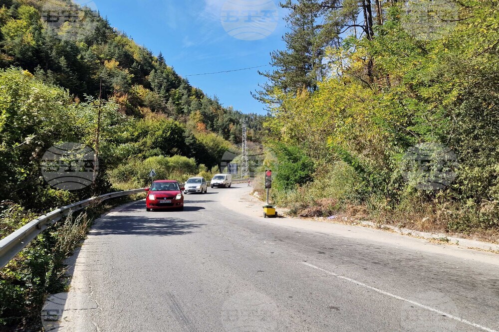 Смолян (27 септември 2025) Област Смолян е с най-лошите и опасни пътища в страната. Екип на Европейския център за транспортни политики извърши проверка на участъци по пътя Кричим - Михалково, Грохотно - Тешел, Здравец - Рожен, Белица - Загражден, Срутището при с. Тикале и Мадан - Печинско. На снимката: Срутището край село Тикале на път II-86В, където от октомври 2018 година до сега движението се извършва в едната лента и се регулира от светофарна уредба.