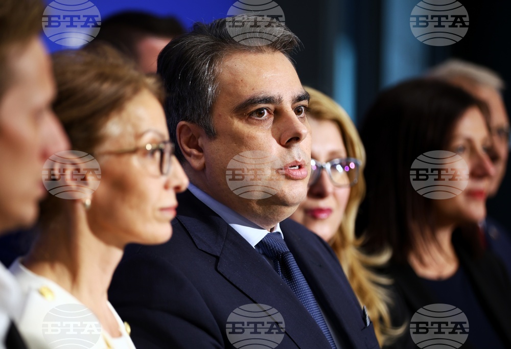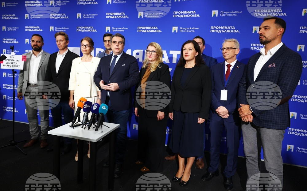 София (28 септември 2025) Брифинг на новоизбраното ръководство на „Продължаваме промяната“ се провежда в Интер експо център. На снимката: председателят на ,,Продължаваме промяната" Асен Василев (в средата).