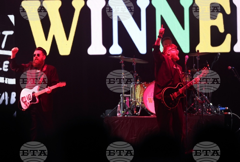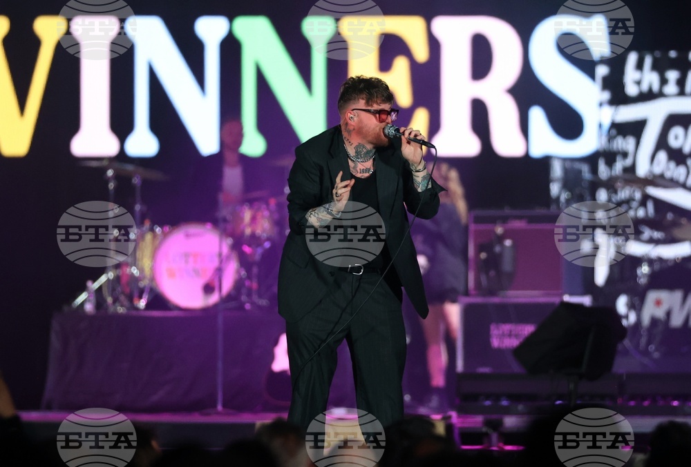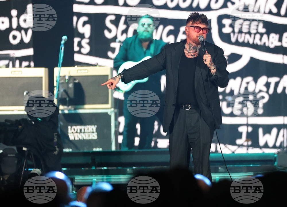 София (28 септември 2025) Световната поп звезда Роби Уилямс изнася концерт на стадион „Васил Левски“ в София. Събитието е част от голямото му световно турне Robbie Williams Live 2025. На снимката: вокалистът на групата The Lottery Winners-Thom Rylance.