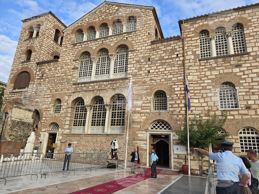 Солун (29 септември 2025) С церемония в храма "Свети Димитър" в Солун бе открита Втората международна конференция по повод 100-годишнината от основаването на богословските списание "Теология". На снимката: президентът на Гърция Константинос Тасулас.