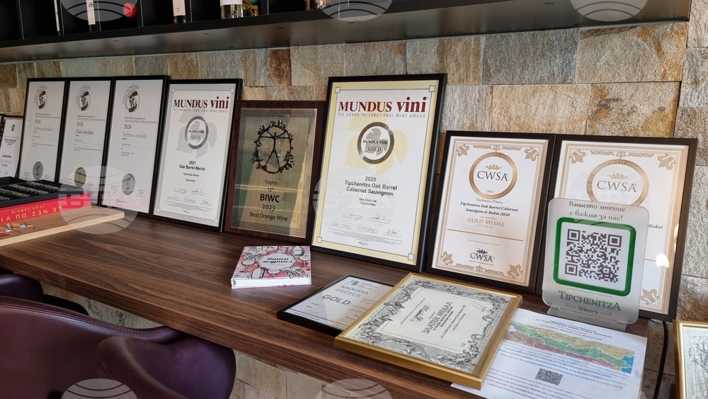 Село Типченица (29 септември 2025) Винарна „Типченица“ изкарва на пазара първата си продукция през 2018 г., и от тогава до сега не сме спирали да градим, каза енологът и директор на винарната Надя Минева. Винарната има капацитет да съхранява и произвежда до 100 т. вино на година, което е между 50-60 000 бутилки от различни реколти. Винарната работи главно в три направления, с голяма палитра от продукти от няколко вида грозде, която може да се види в различен стил. На снимката: част от наградите на винарна „Типченица“.
