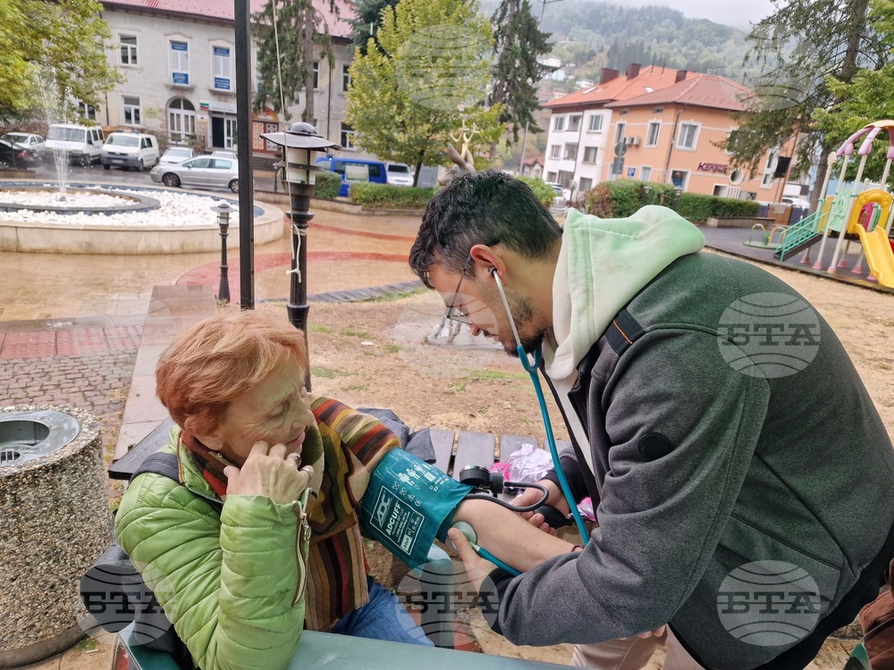 Смолян (29 септември 2025) С осветяване на сградата на Община Смолян и безплатни консултации с кардиолози бе отбелязан Световния ден на сърцето. Инициативата започна с акцията „Изкачи се с кардиолога си“. На снимката: каридиологът д-р Зинаида Ковачева и успешно възстановилият се след трансплантация на сърце - Димитър Костов.