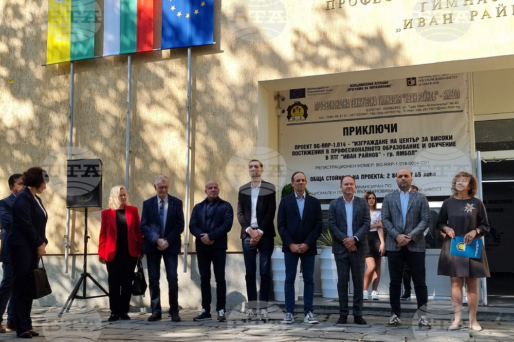 Ямбол (30 септември 2025) Откриване на Център за високи постижения в професионалното образование и обучение в Професионалната техническа гимназия „Иван Райнов” в Ямбол. Близо 3 млн. лева са инвестирани в обзавеждането и оборудването на 14 специализирани кабинети. Финансирането е проект, защитен от училището по Националния план за възстановяване и устойчивост. На церемонията присъстват представители на местната и държавната власт, на фирми - партньори на гимназията, директори на училища и др. Възпитаници на гимназията представят на гостите високотехнологичното оборудване в новите кабинети. На снимката: директорът на техническата гимназия Емилия Кремъкова (втора отдясно).