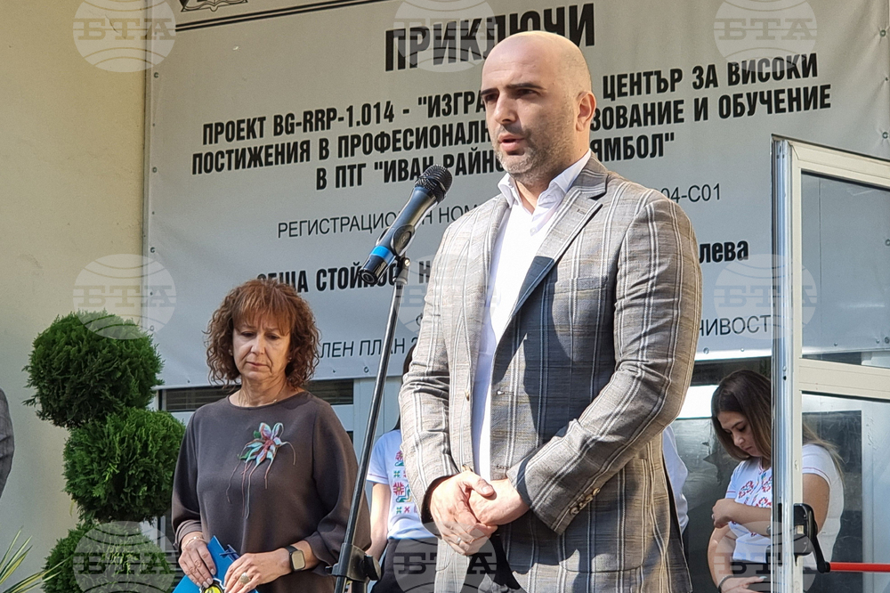 Ямбол (30 септември 2025) Откриване на Център за високи постижения в професионалното образование и обучение в Професионалната техническа гимназия „Иван Райнов” в Ямбол. Близо 3 млн. лева са инвестирани в обзавеждането и оборудването на 14 специализирани кабинети. Финансирането е проект, защитен от училището по Националния план за възстановяване и устойчивост. На церемонията присъстват представители на местната и държавната власт, на фирми - партньори на гимназията, директори на училища и др. Възпитаници на гимназията представят на гостите високотехнологичното оборудване в новите кабинети. На снимката: кметът на Ямбол Валентин Ревански.