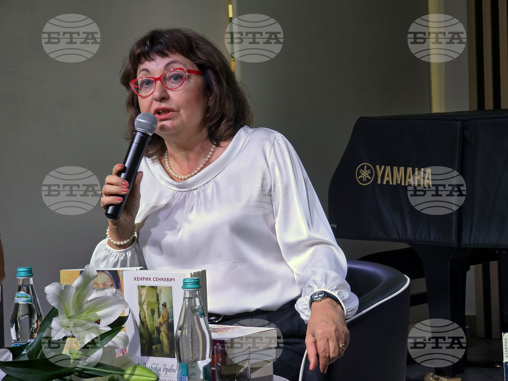 София (30 септември 2025) Книгата „От дълбока древност” с творби на Хенрик Сенкевич, непревеждани досега на български език, се представя в Полския институт. На снимката: преводачът Наталия Бояджиева.