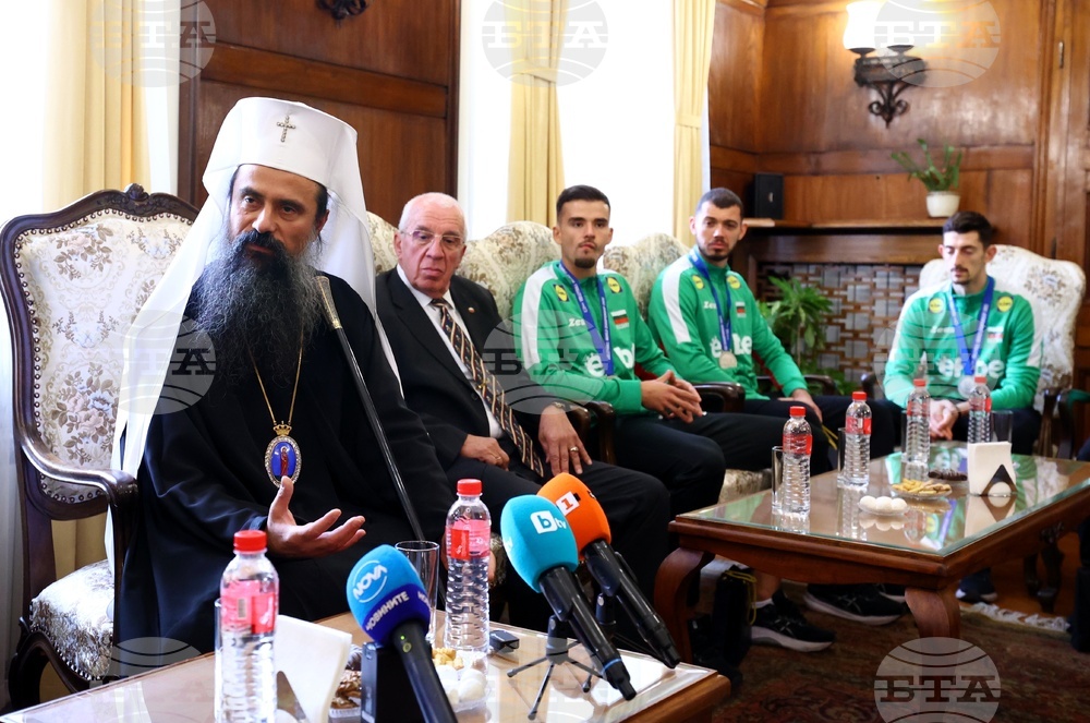 София (1 октомври 2025) Патриарх Даниил се среща с националния отбор по волейбол за мъже в Светия Синод. Присъстват Симеон Николов, министърът на младежта и спорта Иван Пешев, депутатът от БСП Петър Кънев, капитанът на България Алекс Грозданов и старши треньорът Джанлоренцо Бленджини.