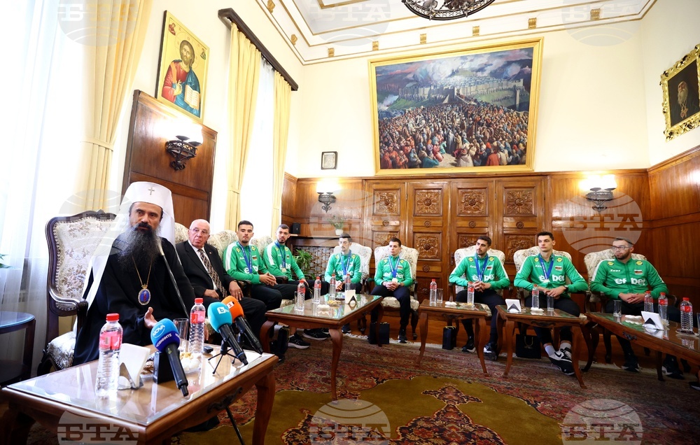 София (1 октомври 2025) Патриарх Даниил се среща с националния отбор по волейбол за мъже в Светия Синод.