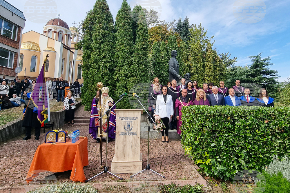 Велико Търново (1 октомври 2025) Във Великотърновския университет тържествено се открива новата учебна година. Ректорът проф. Димитър Димитров отправи приветствие към новите над 3700 първокурсници, към всички студенти и към академичния състав. Великотърновския митрополит Григорий отслужи водосвет. Областният управител Юлия Ликоманова-Мутафчиева връчи празничен букет на първокурсничка и пожела на добър час на всички в науката и в живота.