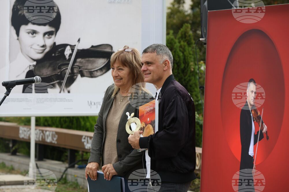 София (1 октомври 2025) Експозицията „Васко 55“, специално издание на инициативата „Моите будители“ се открива днес на Международния ден на музиката, на моста при Националния дворец на културата (НДК). Изложбата е своеобразен визуален разказ за живота и пътя на световноизвестния цигулар Васко Василев. На снимката: заместник кметът на столицата Благородна Здравкова и цигуларят Васко Василев.