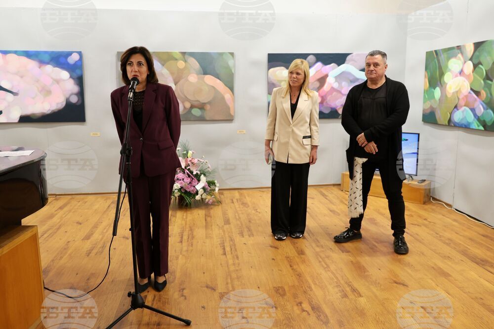 Бургас (1 октомври 2025) С изложба в Бургаската художествена галерия "Петко Задгорски" стартира тазгодишното издание на Фестивала на изкуствата "Порт Прим Арт Фест". В сборната експозиция участват художниците Гергана Николова, Анабел Хамамджиева, Лилияна Александрова, Рафаил Георгиев-Рафо, Цветан Кръстев, Стефан Чурчулиев и Стефан Божков. "Порт Прим Арт Фест" 2025 се провежда в Бургас от 1 до 4 октомври. На снимката (от ляво надясно): маркетинг мениджърът на Гранд хотел и СПА "Приморец", организатор на фестивала - Петя Караманска, зам.-кметът по Култура и вероизповедания на Община Бургас Диана Саватева и художникът и творчески директор на фестивала Стефан Божков.
