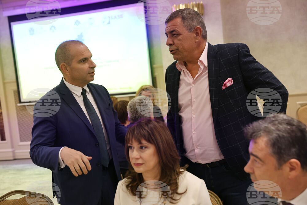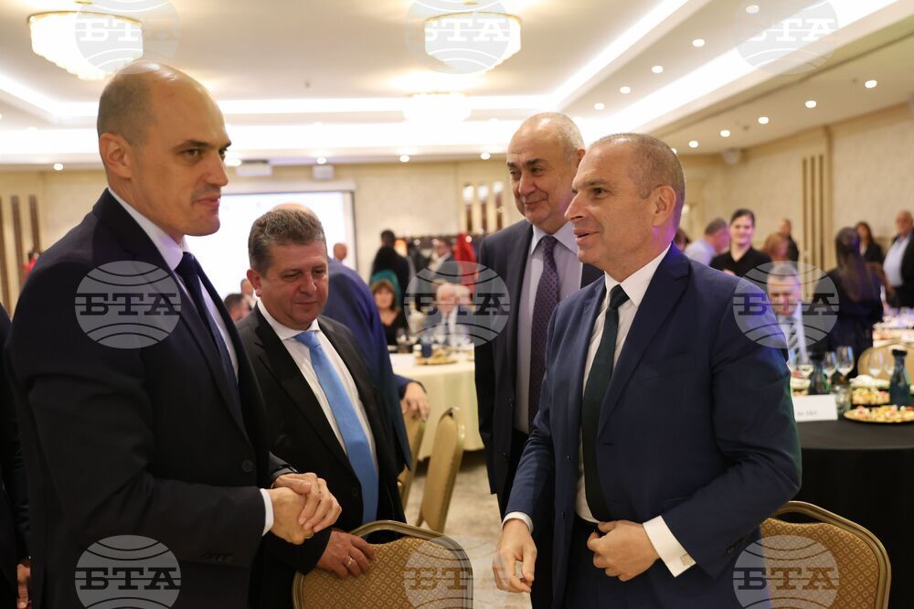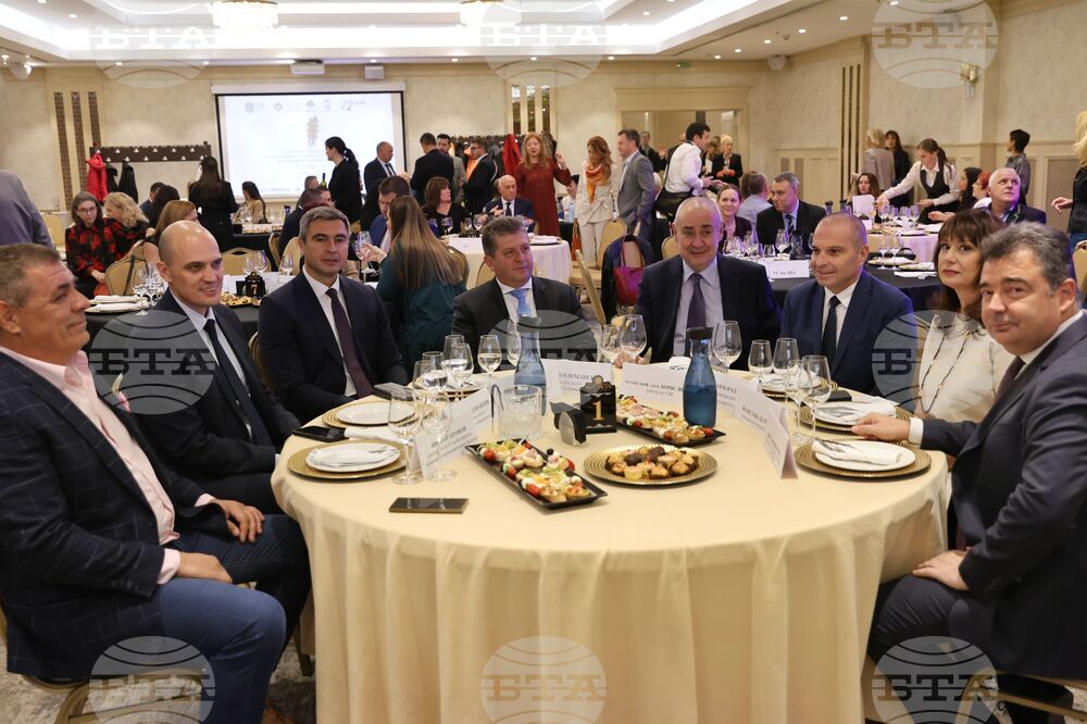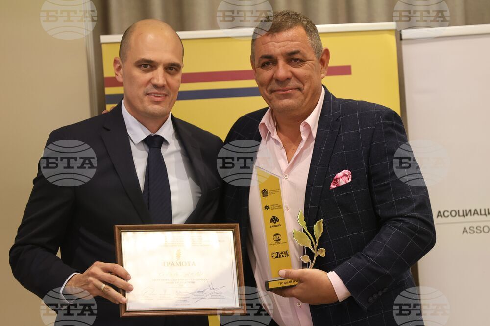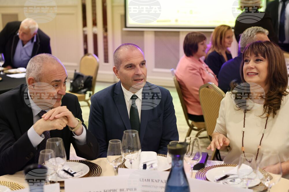 София (1 октомври 2025) Годишните награди в застрахователния и пенсионноосигурителния сектор у нас се връчват на церемония в Гранд Хотел Астория. Организатори са Университетът по застраховане и финанси, Асоциацията на българските застрахователи, Българската асоциация на дружествата за допълнително пенсионно осигуряване, фондация "Проф. д-р Велеслав Гаврийски" и Българската асоциация на застрахователните брокери. Българска телеграфна агенция (БТА) е медиен партньор на събитието. На снимката: вицепремиерът и министър на транспорта и съобщенията Гроздан Караджов (вляво) връчва награда в категория "Застраховател на годината - Общо застраховане" на "Булстрад Виена Иншурънс Груп" АД.