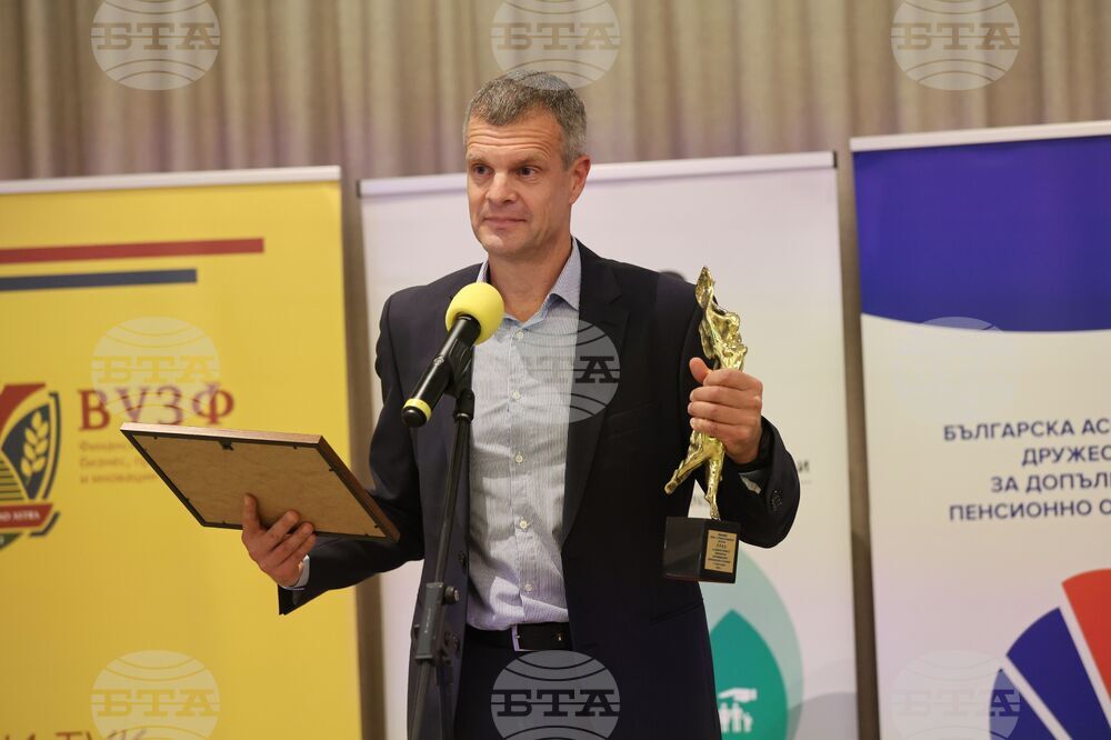 София (1 октомври 2025) Годишните награди в застрахователния и пенсионноосигурителния сектор у нас се връчват на церемония в Гранд Хотел Астория. Организатори са Университетът по застраховане и финанси, Асоциацията на българските застрахователи, Българската асоциация на дружествата за допълнително пенсионно осигуряване, фондация "Проф. д-р Велеслав Гаврийски" и Българската асоциация на застрахователните брокери. Българска телеграфна агенция (БТА) е медиен партньор на събитието. В категория "Пенсионноосигурително дружество на годината - "Допълнително доброволно пенсионно осигуряване" наградата спечели ПОД "Алианц България". Наградата връчи председателят на НОИ Весела Караиванова-Начева (в средата).