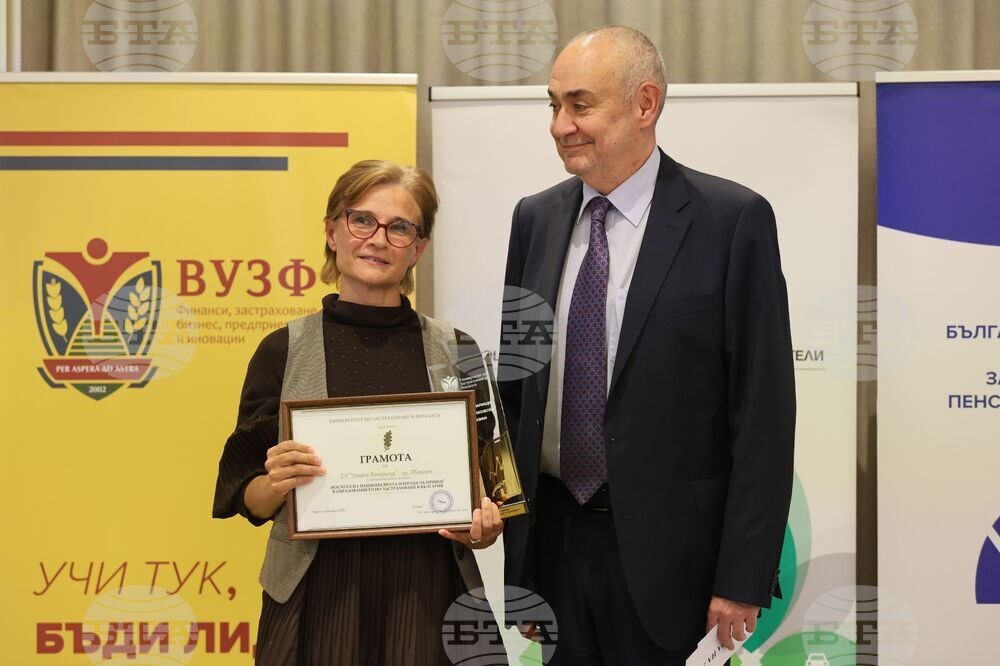 София (1 октомври 2025) Годишните награди в застрахователния и пенсионноосигурителния сектор у нас се връчват на церемония в Гранд Хотел Астория. Организатори са Университетът по застраховане и финанси, Асоциацията на българските застрахователи, Българската асоциация на дружествата за допълнително пенсионно осигуряване, фондация "Проф. д-р Велеслав Гаврийски" и Българската асоциация на застрахователните брокери. Българска телеграфна агенция (БТА) е медиен партньор на събитието. Висшето училище по застраховане и финанси (ВУЗФ) връчи за втора поредна година Национална награда за принос в образованието по застраховане в България на образователна институция, подготвяща кадри за застрахователния сектор. Ректорът на ВУЗФ Борис Велчев връчи наградата на СУ "Георги Бенковски" - Тетевен.