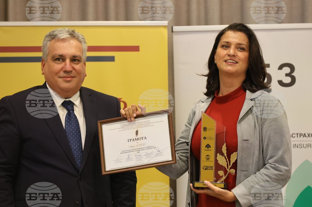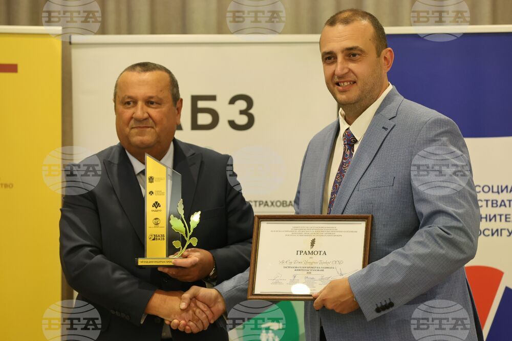 София (1 октомври 2025) Годишните награди в застрахователния и пенсионноосигурителния сектор у нас се връчват на церемония в Гранд Хотел Астория. Организатори са Университетът по застраховане и финанси, Асоциацията на българските застрахователи, Българската асоциация на дружествата за допълнително пенсионно осигуряване, фондация "Проф. д-р Велеслав Гаврийски" и Българската асоциация на застрахователните брокери. Българска телеграфна агенция (БТА) е медиен партньор на събитието. Заместник-председателят на Комисията за финансов надзор (КФН) Пламен Данаилов (вляво) връчи награда в категория "Застраховател на годината - Най-динамично развиващо се дружество" на "Групама Застраховане" ЕАД.