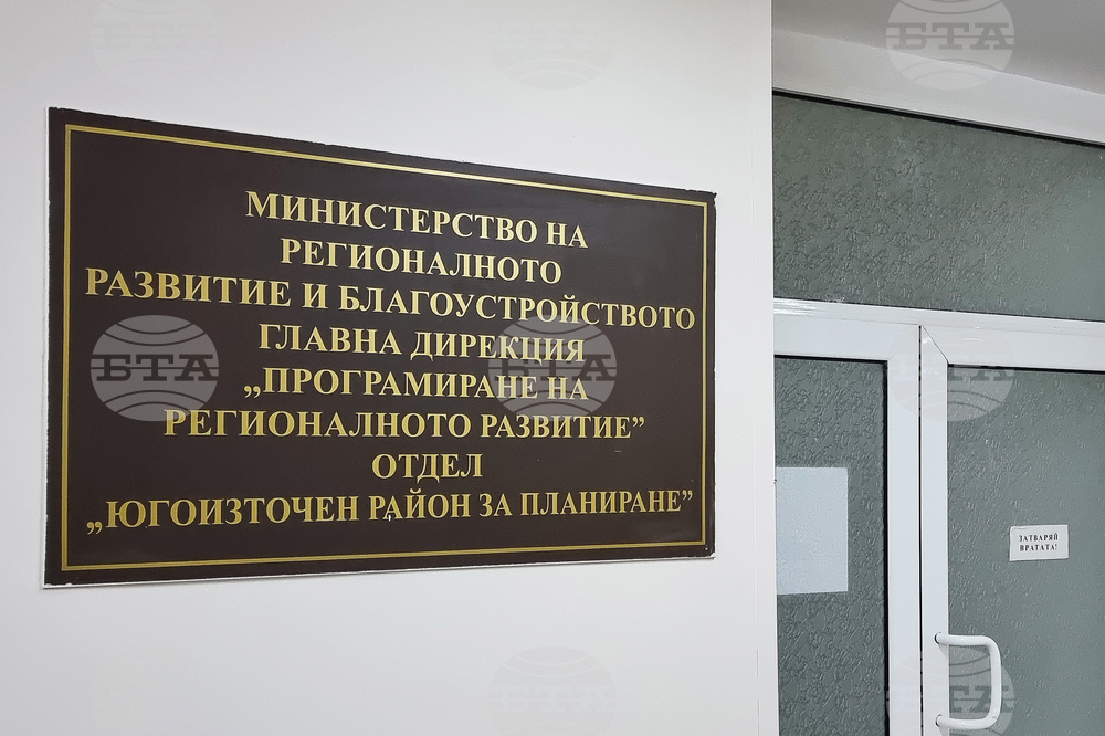 Бургас (8 октомври 2025) Табела - Министерство на регионалното развитие и благоустройството, Главна дирекция „Програмиране на регионалното развитие“, Отдел „Югоизточен район за планиране“.