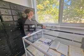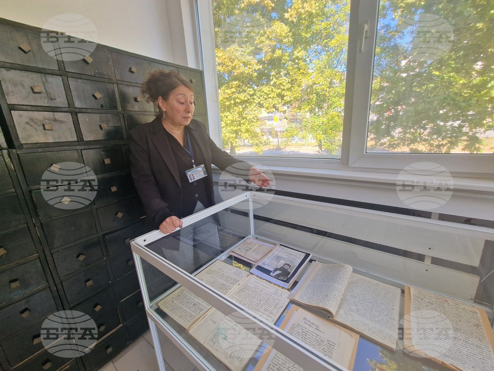 Разград (10 октомври 2025) Колекция от наследството на Анание Явашов показа Държавният архив в Разград. В Деня на отворените врати по повод професионалния празник на българския архивист – 10 октомври, екипът на разградската институция посрещна ученици от професионалните гимназии в града. Те разгледаха подредените в читалнята на архива документи от биографичен характер и от служебната дейност на Анание Явашов, чиято 170-годишнина бе чествана на първи октомври. На снимката: началникът на отдел „Държавен архив“ – Разград Габриела Михайлова.