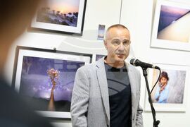Бургас (13 октомври 2025) Благотворителна фотографска изложба в помощ на Драматичен театър „Адриана Будевска“ - Бургас се провежда в Културен дом „НХК“. Събитието е под надслов „Щастието и морето“. В експозицията участват произведения на фотографите Надя Драгиева, Минко Михайлов, Жени Маджарова-Петрова, Марияна Йорданова и Станислава Анестева. Събраните средства ще бъдат дарени за закупуване на осветителна и озвучителна техника за бургаския театър. Инициативата е на „Inner Wheel Club Burgas“ с подкрепата на Община Бургас. На снимката: фотографът Минко Михайлов.