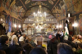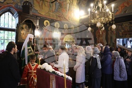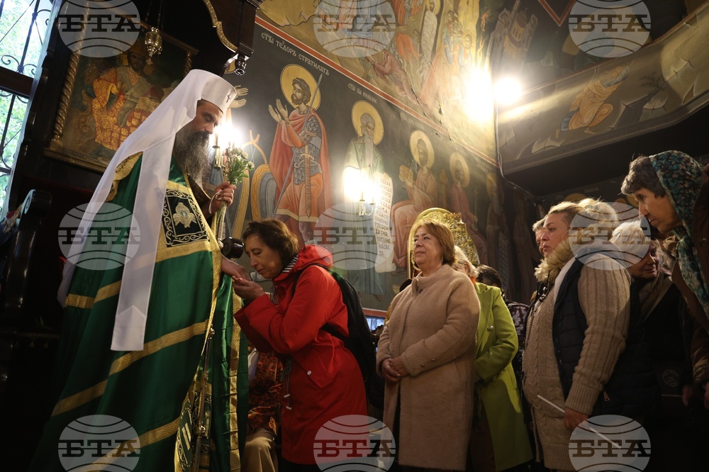 София (13 октомври 2025) Архиерейска вечерня за празника на преп. Параскева - Петка Търновска в столичния храм „Св. Петка“ предстоявана от Негово Светейшество Софийския митрополит и Български патриарх Даниил (вляво).