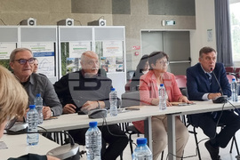 Козлодуй (14 октомври 2025) Семинар за журналисти се състои в Информационния център на ДП РАО. На снимката (от ляво надясно): заместник-председателят на Агенцията за ядрено регулиране (АЯР) Борислав Станимиров, председателят на АЯР Цанко Бачийски, главният инженер на Национално хранилище за радиоактивни отпадъци (НХРАО) Ира Стефанова и изпълнителният директор на Държавно предприятие „Радиоактивни отпадъци“ (ДП РАО) инж. Дилян Петров.