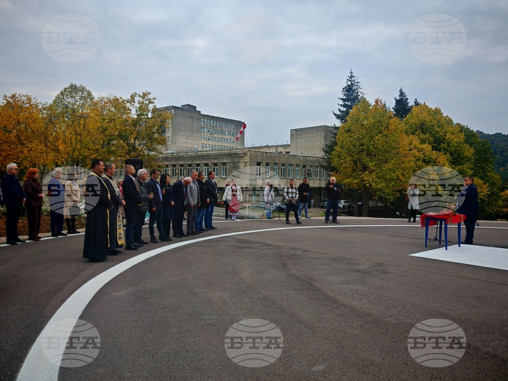 Габрово (14 октомври 2025) Министърът на здравеопазването Силви Кирилов (четвърти вдясно) откри новопостроената хеликоптерна площадка. Съоръжението е изградено в двора на Многопрофилната болница за активно лечение (МБАЛ) „Д-р Тота Венкова“.