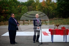 Габрово (14 октомври 2025) Министърът на здравеопазването Силви Кирилов откри новопостроената хеликоптерна площадка. Съоръжението е изградено в двора на Многопрофилната болница за активно лечение (МБАЛ) „Д-р Тота Венкова“. На снимката: директорът на МБАЛ "Д-р Тота Венкова" д-р Минко Михов.