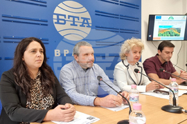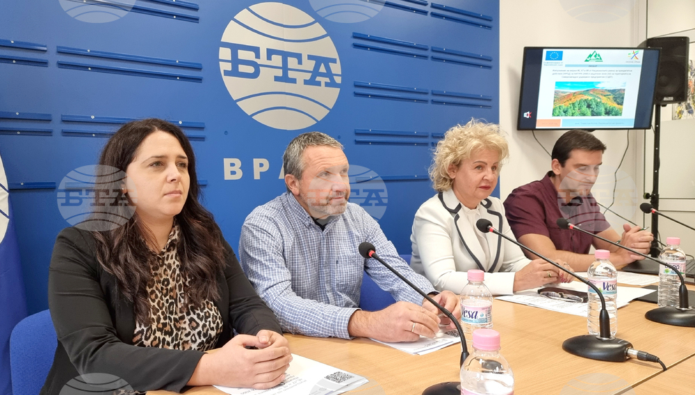 Враца (14 октомври 2025) Северозападното държавно предприятие (СЗДП) Враца изпълнява проект, по който ще се извършват дейности за подпомагане на гората в нейното естествено израстване и регулиране на видовия й състав, обяви днес на пресконференция в Националния пресклуб на БТА във Враца директорът на предприятието инж. Ваня Каменова. Проектът „Изпълняване на мерки 46, 47 и 48 от Националната рамка за приоритетни действия за Натура 2000 в защитените зони на територията на СЗДП Враца“ се реализира по програма „Околна среда 2021 – 2027“ и е на обща стойност над 6,699 млн. лв. без ДДС, като европейското финансиране е над 5,949 лева. На снимката (от ляво надясно): инж. Александрина Чевелекова, инж. Цветан Цветков, директорът на СЗДП Враца инж. Ваня Каменова и ръководителят на проекта инж. Томислав Колов.