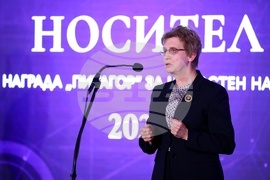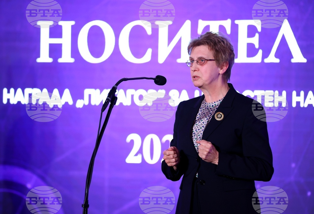 София (14 октомври 2025) Министерството на образованието и науката (МОН) връчва годишните Национални награди за принос в науката „Питагор”. На снимката: носителката на Голямата награда „Питагор“ за цялостен принос в науката проф. Радостина Стоянова от Института по обща и неорганична химия към БАН.