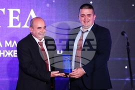 София (14 октомври 2025) Министерството на образованието и науката (МОН) връчва годишните Национални награди за принос в науката „Питагор”. На снимката: главен асистент доктор Емилио Матеев от МУ в София получава награда в областта на науката.