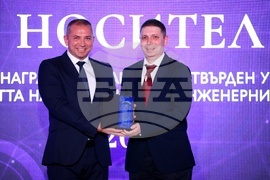 София (14 октомври 2025) Министерството на образованието и науката (МОН) връчва годишните Национални награди за принос в науката „Питагор”. На снимката: доц. д-р Мартин Ралчев (вдясно) от Института по роботика към БАН получава награда в областта на науката.