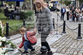 Гоце Делчев (17 октомври 2025) С множество прояви бе отбелязана 113-ата годишнина от Освобождението на Гоце Делчев. На снимката: представителят на БСП - Гоце Делчев Гергана Орманлиева (вляво).